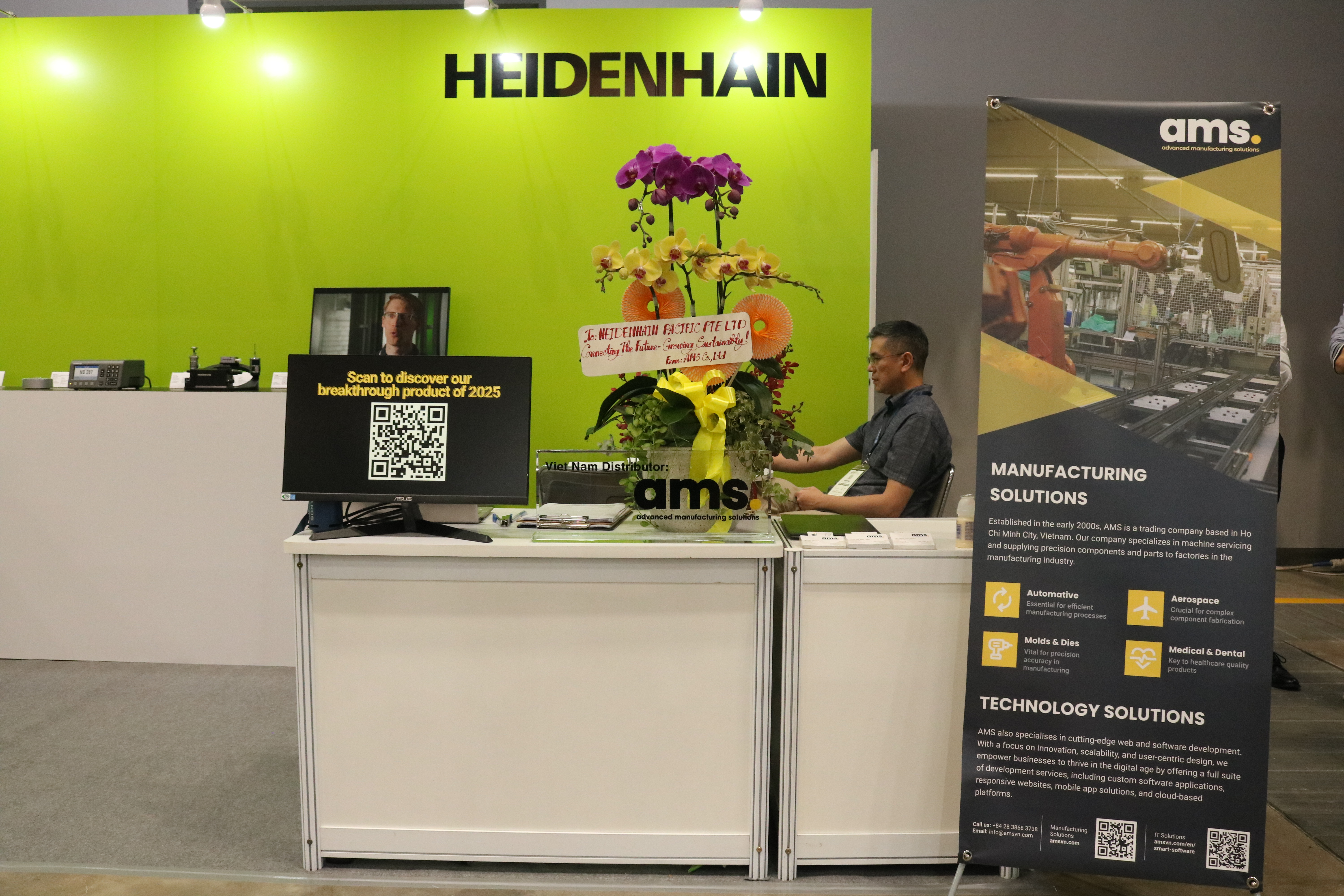 AMS x Heidenhain: A Trusted Partner at Booth A2/AK1-5 As a long-standing partner of Heidenhain, AMS proudly welcomed a constant stream of visitors during the four-day exhibition. Attendees showed strong interest in advanced metrology solutions, automation, CNC machining, cutting tools, grinding and polishing technologies, and more. The diverse technologies on display reflect AMS and Heidenhain's shared commitment to supporting Vietnam's manufacturing transformation.