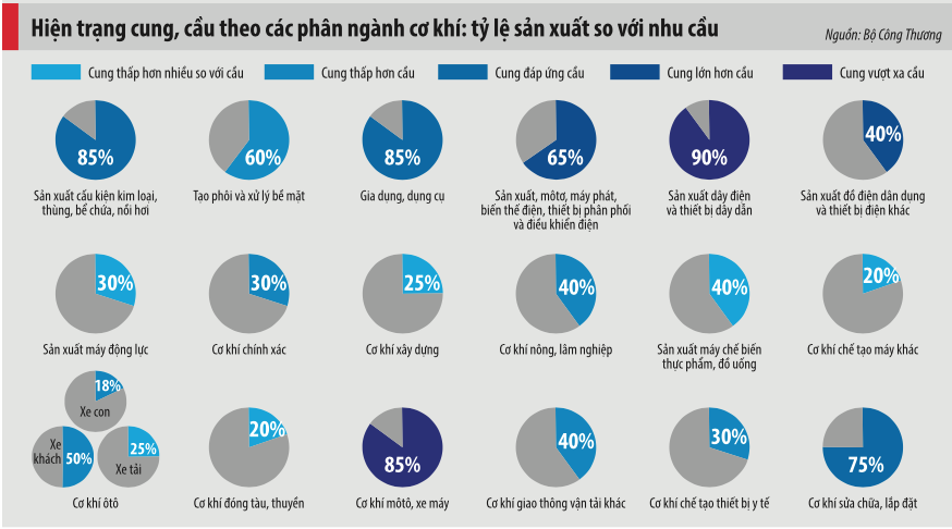Domestic production of metal components now satisfies 85-90% of the demand for motorcycle production, 15-40% for automobile manufacturing (depending on vehicle type), about 20% for integrated equipment production, 40-60% for agricultural machinery and engines, and 40% for construction machinery. However, high-tech industrial sectors are currently meeting only around 10% of their demand for metal components.